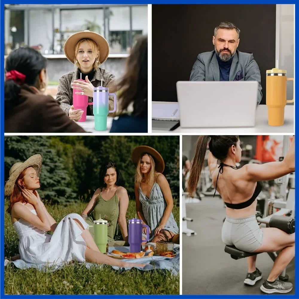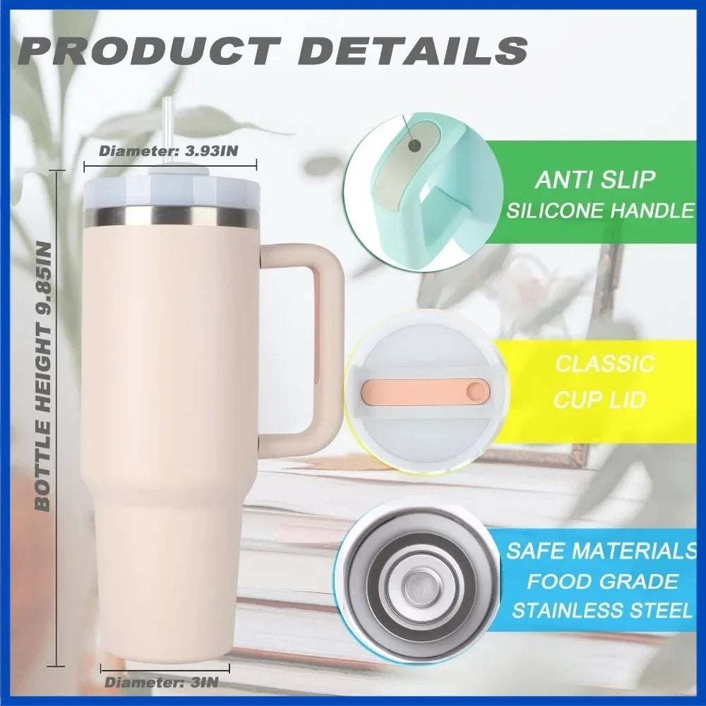 Tazza per auto in acciaio inossidabile da 40 once con manico Bicchiere da caffè con tazza di paglia Bicchiere a doppia parete termico ghiacciato per tazza da viaggio sottovuoto